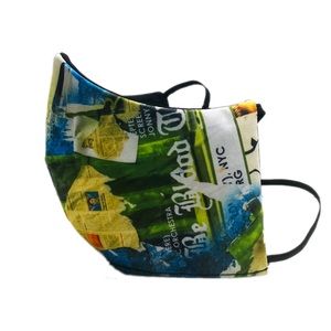 Made out of cotton, and heavy duty Pellon 376 Fusible ( Crisp, fusible cotton stiffener )