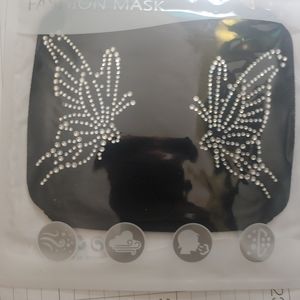 Black Adult Face Mask with Two Rhinestone Dragonflies