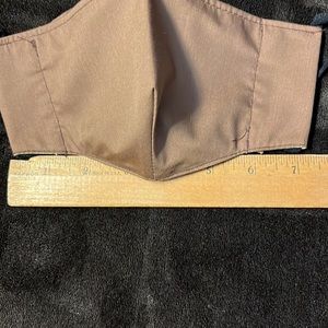 Adult’s face mask. Homemade with two layers of fabric. Good for glasses. Machine wash and dry, the ear piece regains shape after washing.