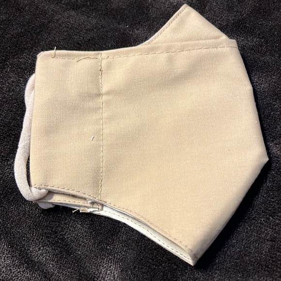 Adult’s face mask. Homemade with two layers of fabric. Good for glasses. Machine wash and dry, the ear piece regains shape after washing.