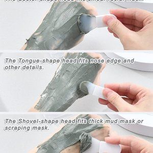 Silicone Brush Head: The brush head is made of soft silicone, safe and non-toxic, soft and not easy to break, and can be reused. easy to clean, quickly dry. Different shape heads to meet your different mask needs; The sector-shape head fits the Apply mask, The small tongue-shape head fits the nose edge and other details, and The shovel-shape head fits thick mud mask or scraping mask.
