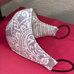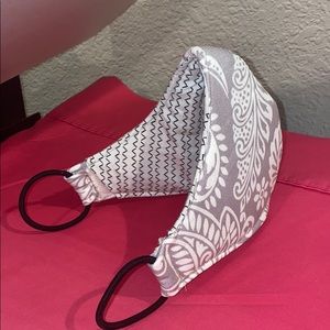Washable and ReUseable Face Mask lined with two cotton fabrics and backed with Bosal Fusible Foam Stabilizer with filter pocket! 10 % polyester. Different patterns attached