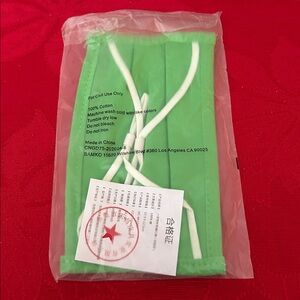 Be ready it’s flu season, here are three (3) 😷 Brand New face masks. All three are green color and made of 100% cotton and machine washable. Ward off the germs! 😷