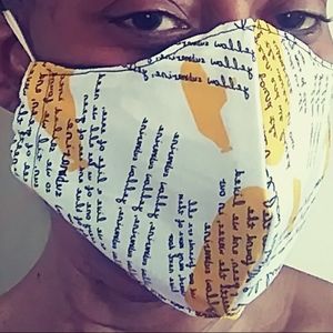 Face mask with filter pocket. Washable, filter can be changed, two band elastic that fits behind the head and neck. Cotton mask, very comfortable.
