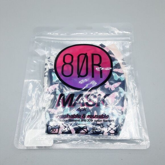 80R Adult Face Mask 4Pack Washable Reusable Butterfly Black Pink.
