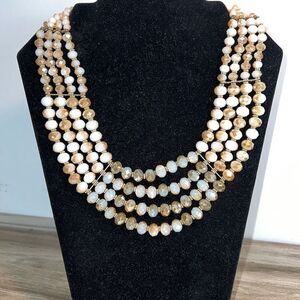 Faceted 4 Strand Beaded Bib Statement Necklace