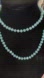Elegant and timeless single strand necklace featuring faceted aqua blue glass beads that beautifully catch the light. Measures approximately 17 inches in length. Perfect for layering or worn alone as a subtle statement piece.