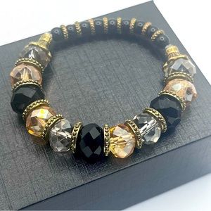 Faceted Beaded Crystal Stretch Bracelet Golden