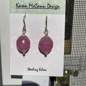 Bohemian glass is glass produced in the regions of Bohemia and Silesia, now parts of the Czech Republic. It has a centuries long history of being internationally recognized for its high quality, craftsmanship, beauty and innovative design. These hand-crafted earrings featuring faceted milk glass beads in pink rose, crafted in Czechoslovakia, and sterling silver beads and findings from Bali, Indonesia and the USA.