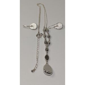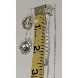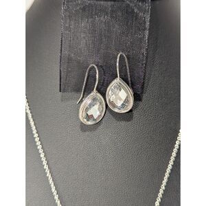 Teardrop faceted clear rhinestones set in silver tone Y drop necklace, matching teardrop earrings on wires. Measurements are approximate: See photo's