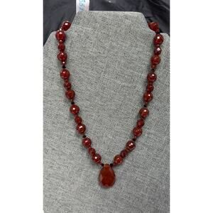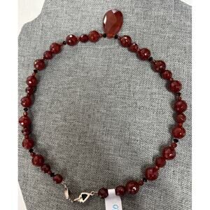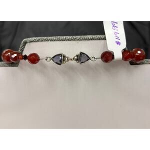 Faceted Cognac Banded Agate Bead Necklace Sterling Clasp 16" #62700