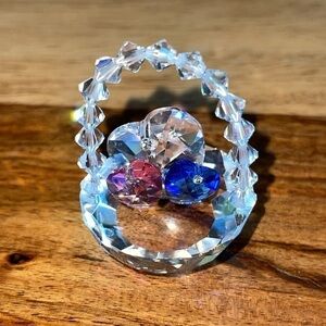 Faceted crystal figurine bundle. Includes whale, angel, bouquet of flowers, basket of hearts and Christmas tree. Tallest figurine is approximately 2 1/2”. Good pre owned condition