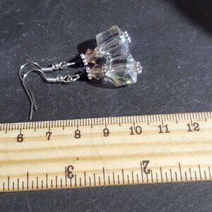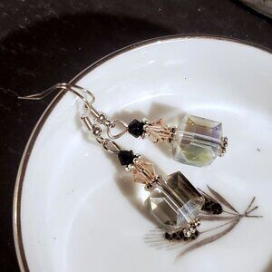 Faceted Czech Crystal Clear Pink Black Silver Cube and Bicone Earrings