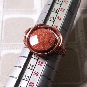 Faceted Goldstone & Copper Wire Ring - Handmade & Unique! Size 7.5