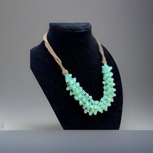Faceted Green Stone Multi-Layer Drop Choker Necklace On Corded Strands