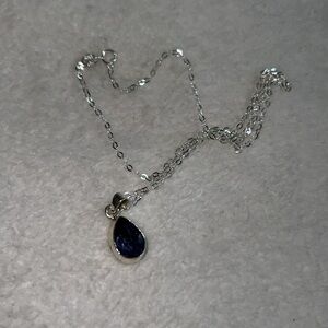 Stunning deep violet-blue faceted iolite gemstone set in a teardrop bezel setting of solid 925 sterling silver. Paired with a matching 925 silver chain for a refined, elegant look. The faceted cut enhances light reflection, adding sparkle and depth. Both pendant and chain are stamped 925. Ideal for daily wear or layering.
