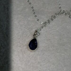 Stunning deep violet-blue faceted iolite gemstone set in a teardrop bezel setting of solid 925 sterling silver. Paired with a matching 925 silver chain for a refined, elegant look. The faceted cut enhances light reflection, adding sparkle and depth. Both pendant and chain are stamped 925. Ideal for daily wear or layering.