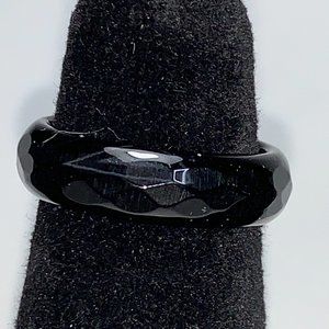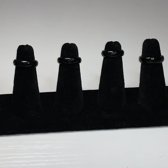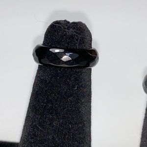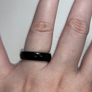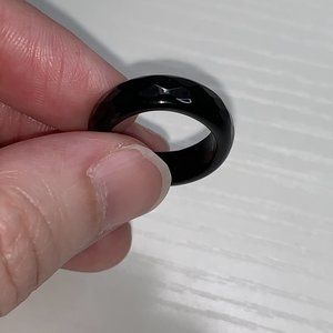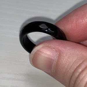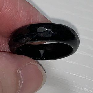 These are a 6.10mm wide Faceted Black Onyx stone ring. These are sold natural stone rings. You can break them if you slam them or drop them so be mindful of that. These have a flat inside and a rounded top. I have more than one size for this style ring.