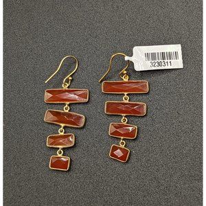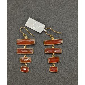 Carnelian Orange-Red Gemstone Dangle Gold Tone Hook Earrings. Very pretty!