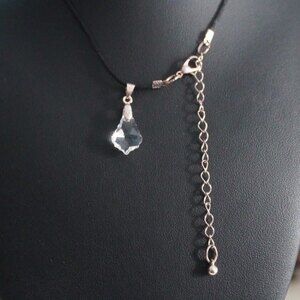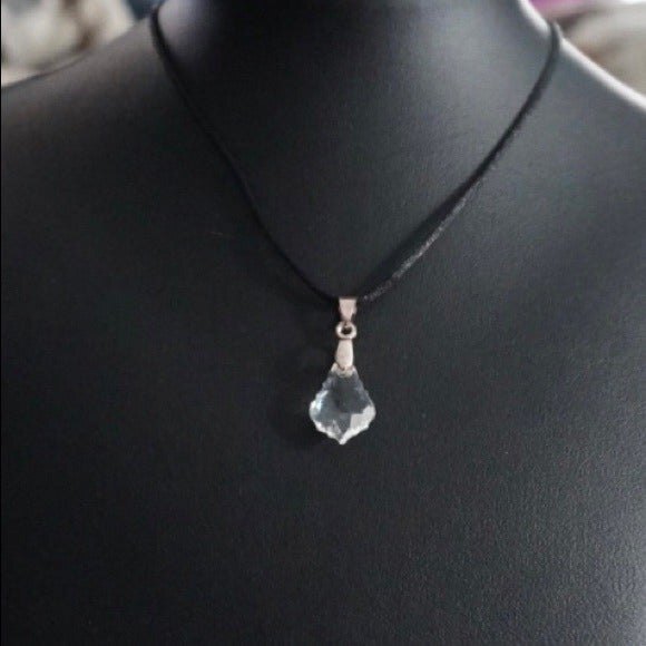 Clear Faceted Prism Pendant Necklace on a Black Cord