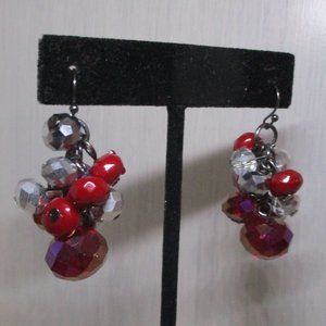 Faceted Red Cluster Drop Earrings Red