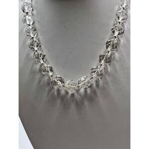 Vintage necklace with hand-knotted, faceted rock crystals in graduating sizes.