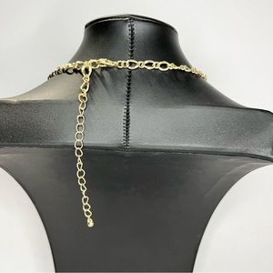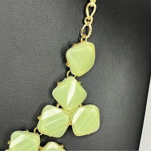 Faceted Statement Bib Necklace Gold Tone Light Green 18-21"