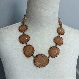 Faceted gem statement necklace on a gold tone chain