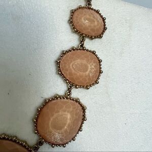 Peachy pink color. Gently used condition. May have minor tarnishing on chain. Great for a vacation or brunch