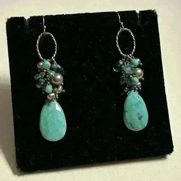 Faceted turquoise colored stone dangle earrings