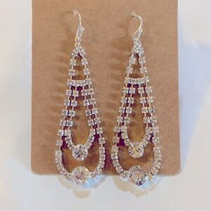 Faceted Rhinestone Fancy Pierced Earrings Silvee Tone Metal 2.5” Bling Glam Gorgeous