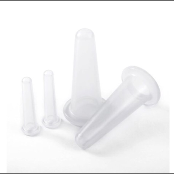 Facial cups increase blood flow, reduce inflammation, and activate lymphatic drainage. Boosts collagen, reduces fine lines and wrinkles by safely plumping skin tissue and improves blood supply to the surface of the skin to increase suppleness. Also shrinks pores and softens scars. 4 piece set. 2 face cups and 2 mini eye cups.
