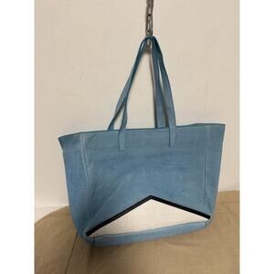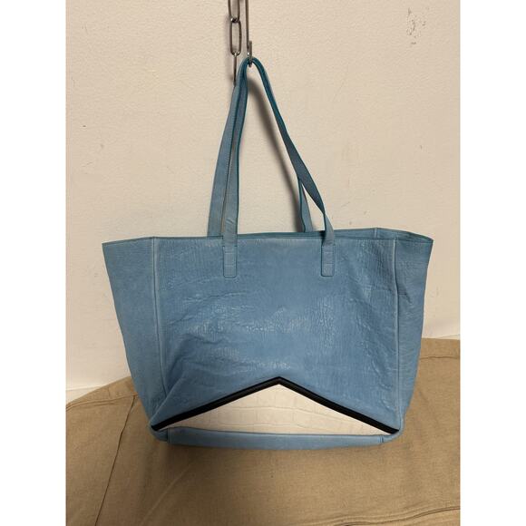 Facine Tote Bag Womens Light Blue Leather Large Shopper Croc Trim Shoulder Zip