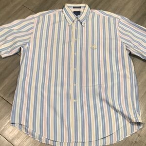 Faconnable 100% Cotton Pastel Stripe Short Sleeve Woven Shirt size XL