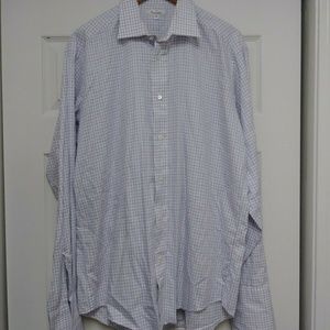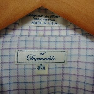 Faconnable purple blue white checked Mens Shirt LS XL long cuffs. Condition is Pre-owned. J16