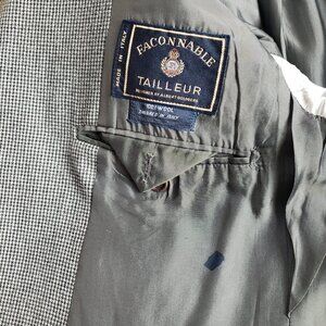 Men's houndstooth blazer from Faconnable. 3 button. Double vent. In gently worn preowned condition, with no apparent flaws. Made in Italy