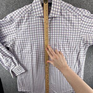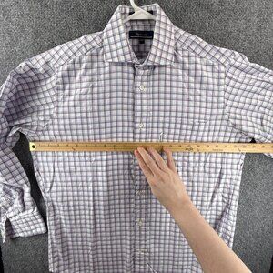 Faconnable Blue Purple USA Cotton Check 15.5 Pocket Long Sleeve Shirt Men Woven