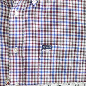 Faconnable Classique Men's Blue & Burgundy Plaid Button Down Long-Sleeved Shirt Med