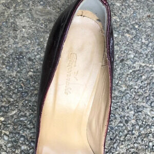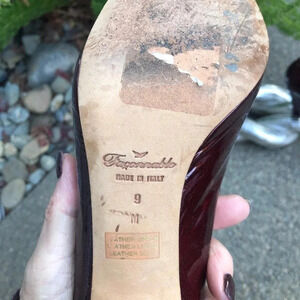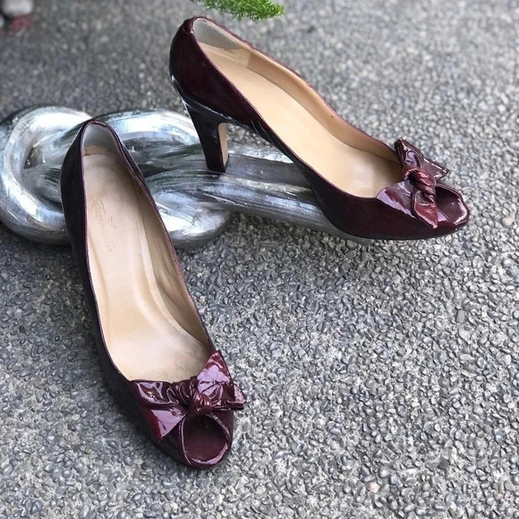 Faconnable Cranberry Red Patent Leather Bow Peep Toe Heels Size 9