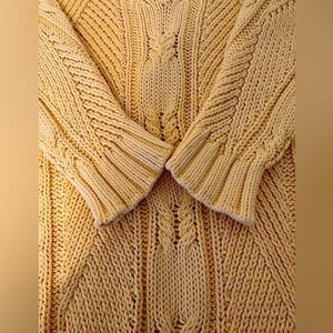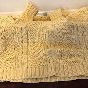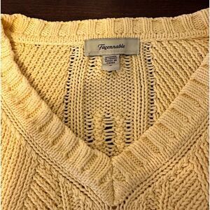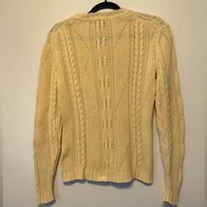 Faconnable Cream Chunky Cable Knit Soft Cotton Pullover V-Neck Preppy Sweater S