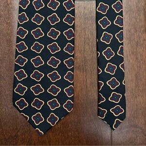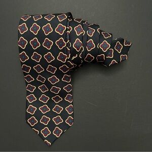 Faconnable Dark Navy and Red Geometric 100% Silk Tie