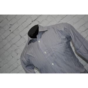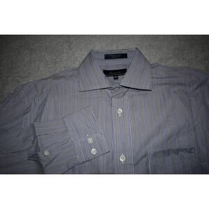 Faconnable Dress Shirt Mens Size Medium Purple Gray Striped Cotton MADE In USA