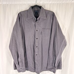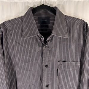 Faconnable Dress Shirt Men's XL Grey Striped Button Up Long Sleeve 100% Cotton