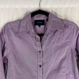 Faconnable Dress Shirt Women's 6 Purple Striped Button Up Long Sleve 100% Cotton