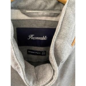 Stylish gray button down shirt. Features a sleek design with a stand-up collar. Perfect for casual wear.