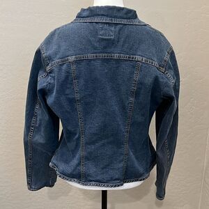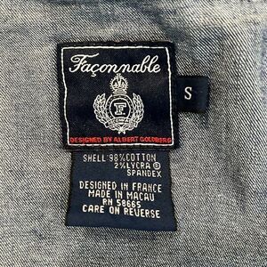 Faconnable denim jacket, vintage jean jacket, fitted stretch jean jacket, Faconnable women’s small jacket, blue wash denim jacket, vintage Faconnable coat, women’s denim shacket, slim fit vintage jacket, 90s style jean jacket, retro Faconnable outerwear, classic blue denim coat, French fashion denim jacket, lightweight button front jacket, designer stretch jacket, closet staple denim layer, soft fitted blue jean jacket, y2k denim fashion, womens cropped jean jacket, distressed Faconnable jacket, collectible denim outerwear