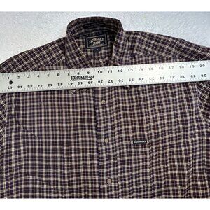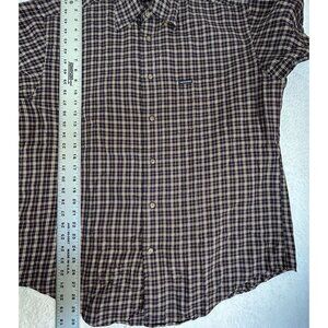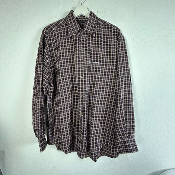 Faconnable Jeans Mens Plaid Cotton Long Sleeve Button-Down Shirt Medium Brown