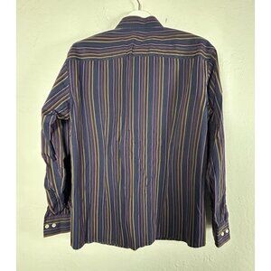 Faconnable Jeans Mens Striped Long-Sleeve Button-Up Shirt Medium Blue Cotton
