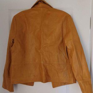 "Just like butter . . . " (SNL) Caramel color goatskin jacket beautifully pairs with jeans or skirt . . . OR take it to a whole new level by adding embroidery or painting. Fully lined, beautifully made. Bought from Nordstrom and just discovered un-used back of closet under another coat. Labeled as a ladies small, but see measurements below.