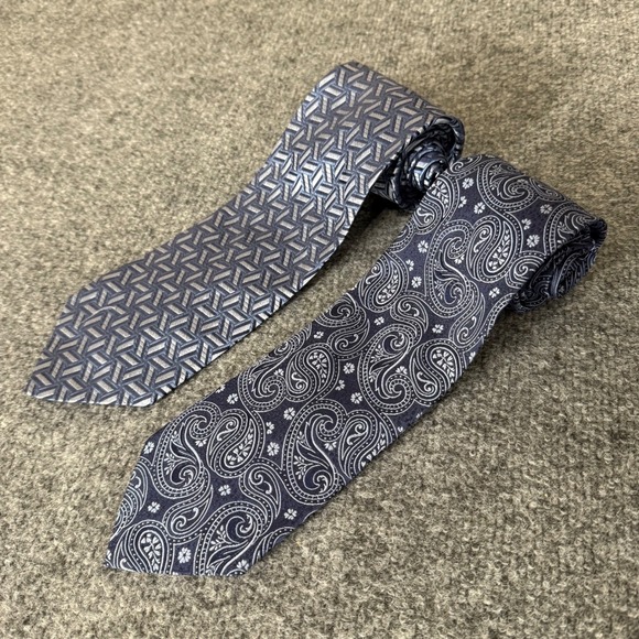 Faconnable Lot of 2 Mens Silk Dress Ties Blue Paisley Geometric Formal Neckwear